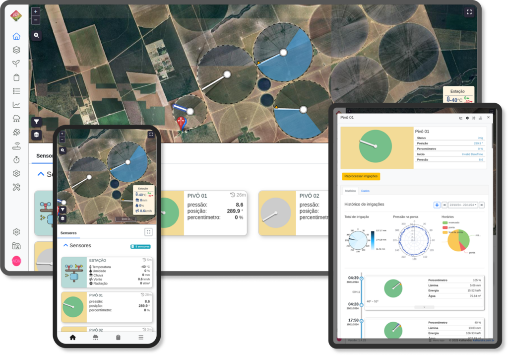 Acompanhe a operação do seu pivô em tempo real e transforme dados em decisões inteligentes.